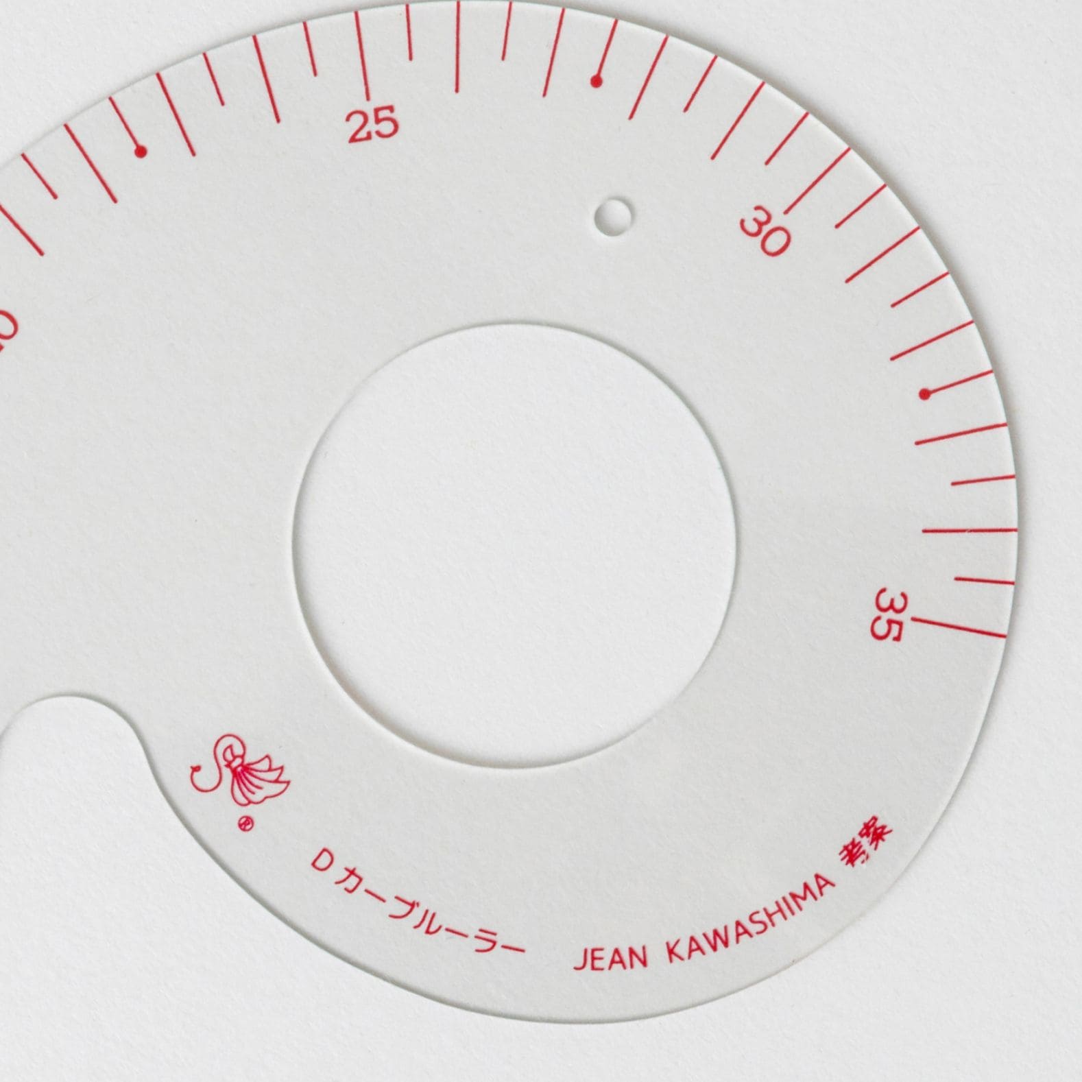 “D”は、Deep(深い)の頭文字をとったもので、衿ぐり、袖ぐり、股ぐりなどの強いカーブ線を書くために使用されます。また、曲線の長さを測ることもできます。