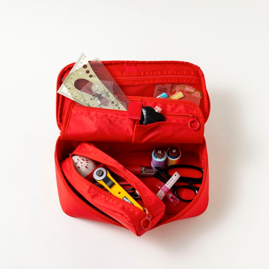 「BUNKA洋裁ケース」の収納構造をベースに、素材と機能面をアップデートしたソーイングバッグ。