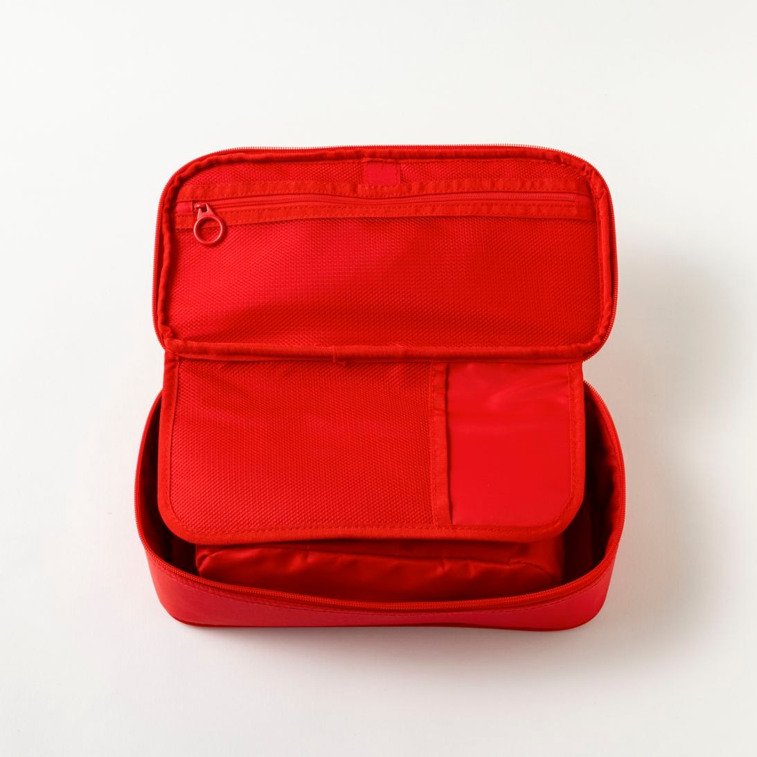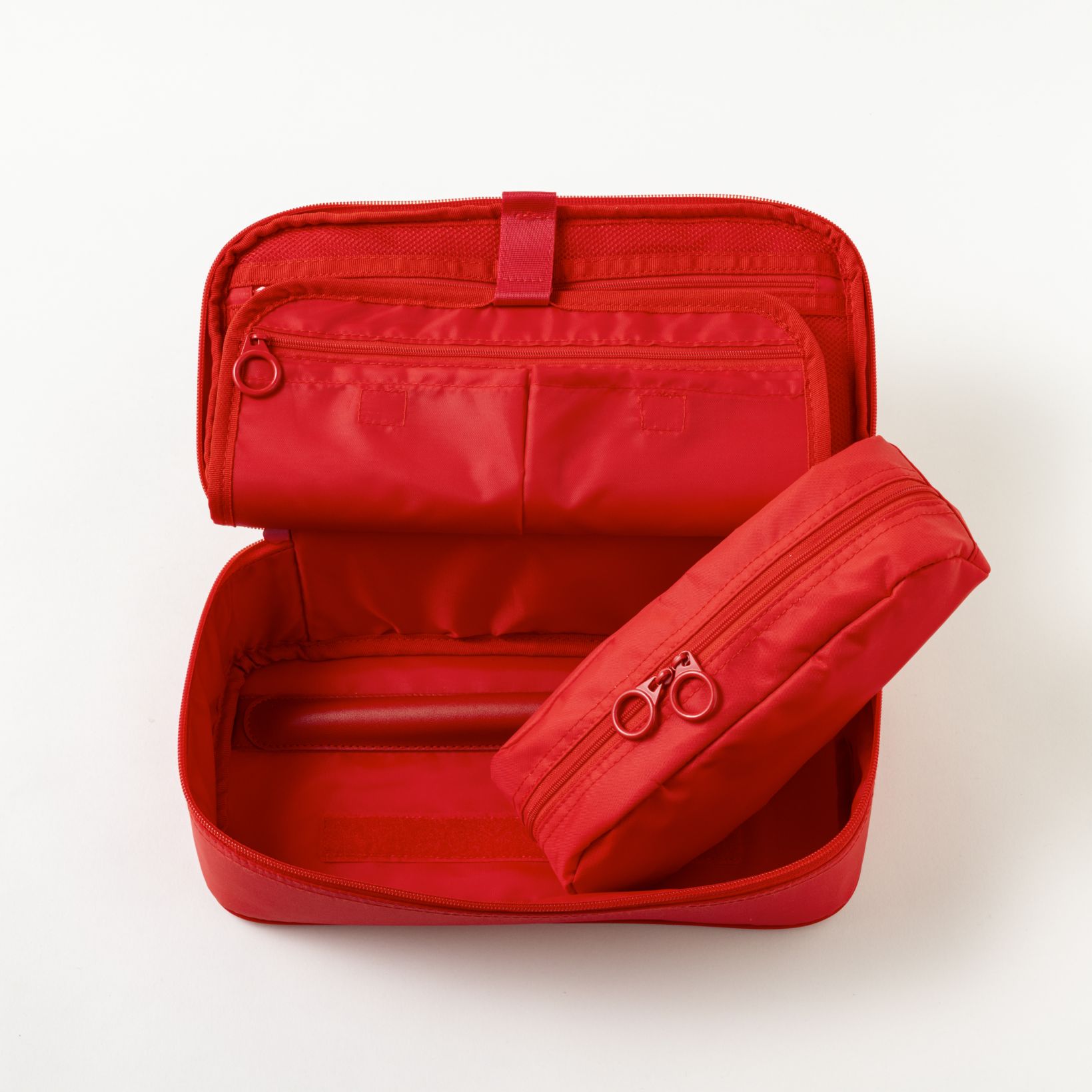 面ファスナーで簡単に着脱できるポーチが付属。横幅を拡張した新設計により、厚みのあるピンクッションもスマートに収まります。